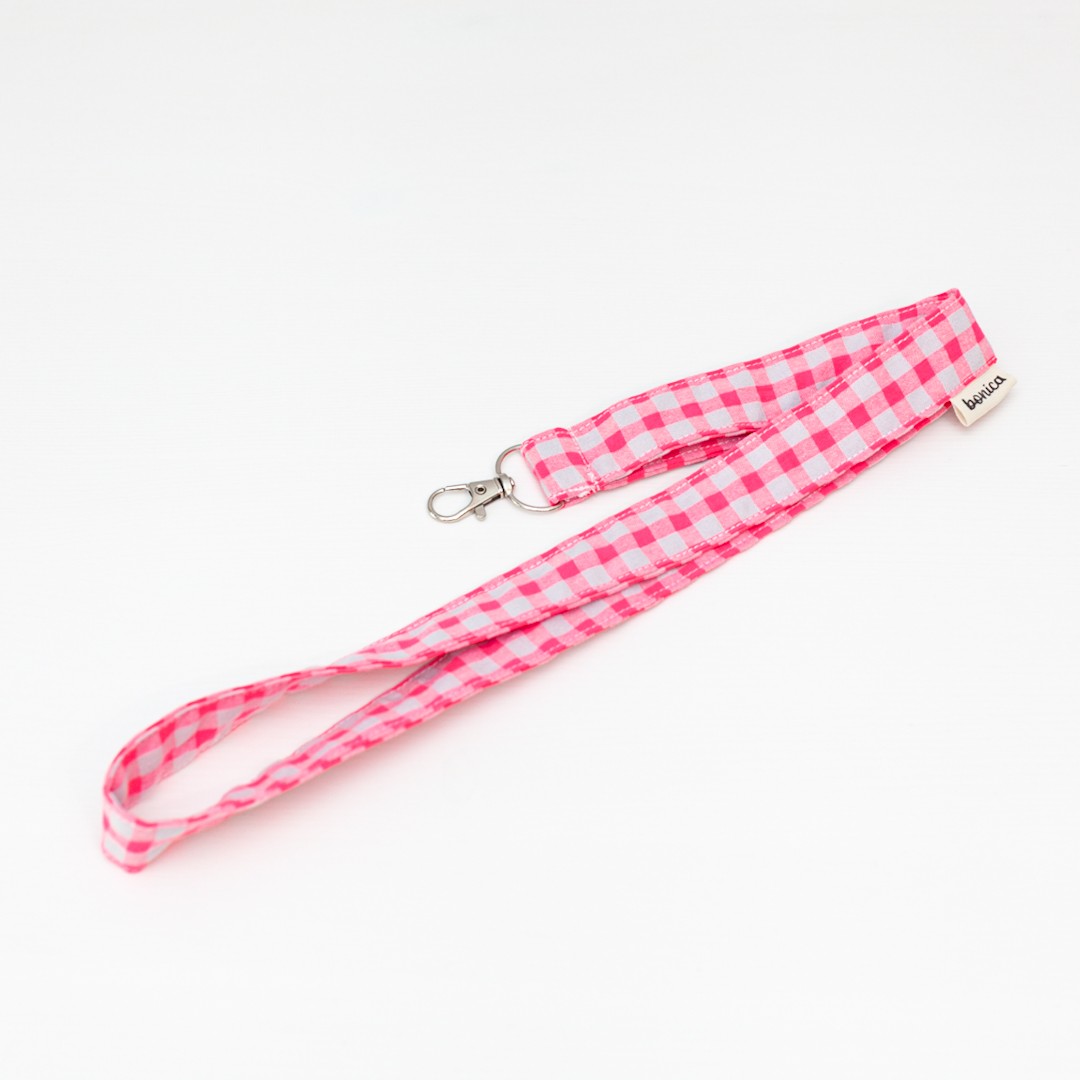 El landyard vichy cereza es el complemento perfecto para tu día a día.